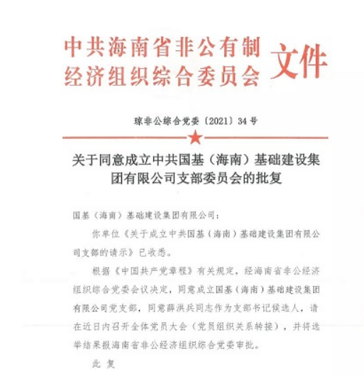 熱烈祝賀中共國基(海南)基礎(chǔ)建設(shè)集團(tuán)有限公司支部委員會(huì)成立揭牌儀式圓滿成功!